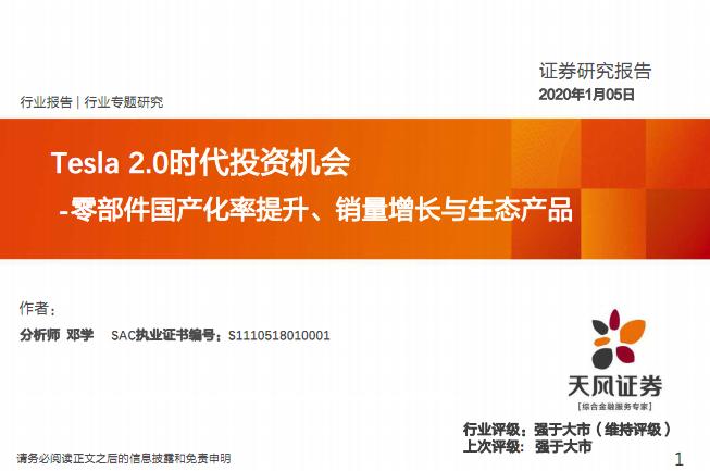 汽车行业Tesla2.0时代投资机会:零部件国产化率提升、销量增长与生态产品-20200105-天.pdf