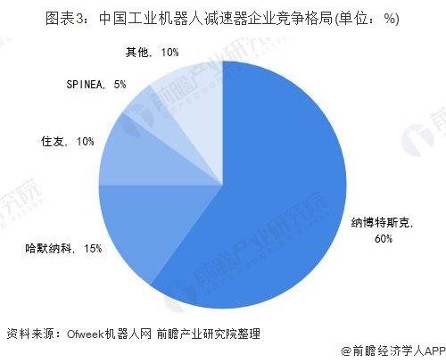 聚焦到减速器来看,减速器主要用于传导伺服电机的动力,调整速度和扭矩,以便更精确地控制机器人动作。目前世界上最大的减速器生产厂家是日本纳博特斯克精密机械公司,该公司是世界上处于优势地位的专业的机器人用精密摆线针轮减速机制造商,其核心产品为精密减速机RV系列。早在二十世纪八十年代早期,应世界主要机器人制造商要求,纳博特斯克就将已经在挖掘机行业成功使用的RV减速机的精准可靠设计,调整到要求严格的机器人制造行业中使用。目前中国减速器市场中,纳博特斯克占比达60%之多。