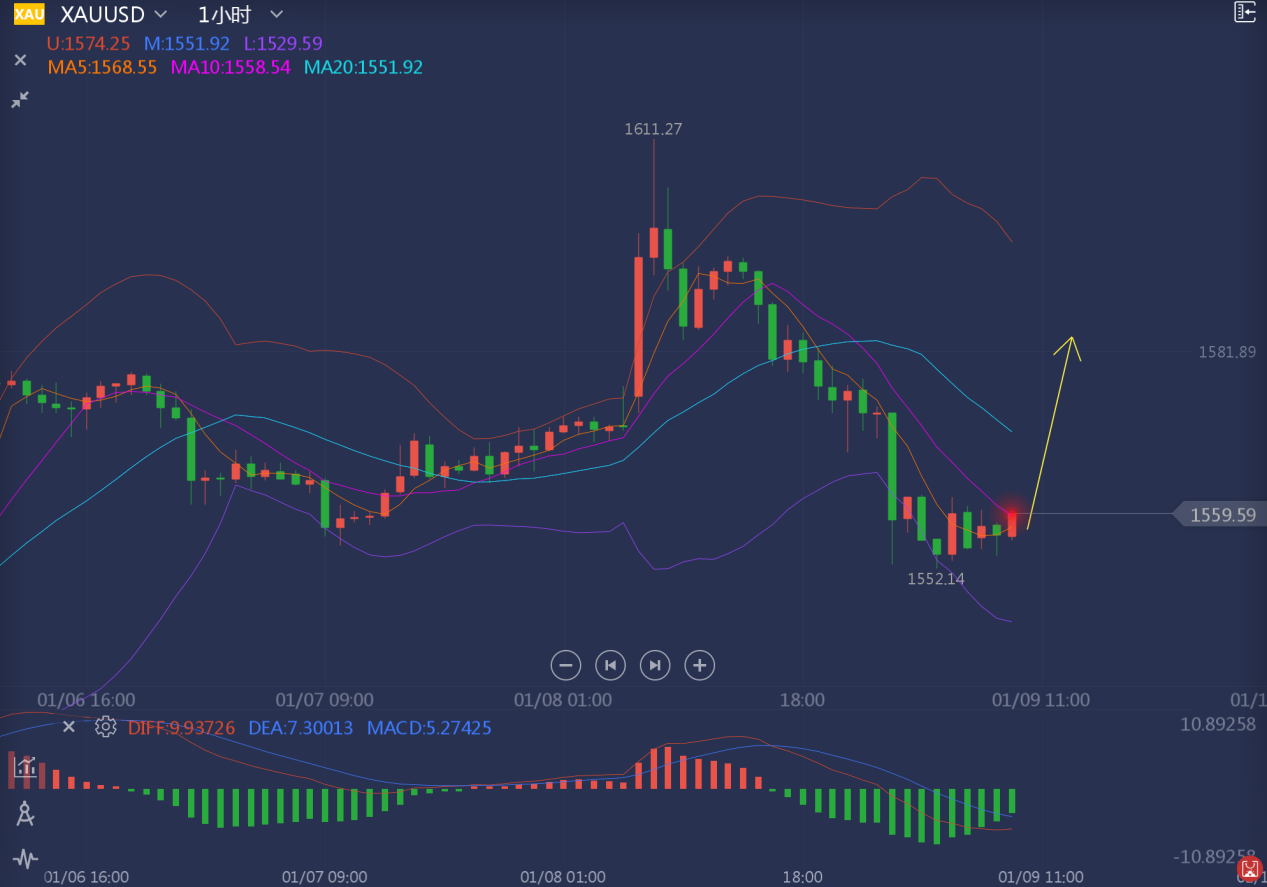 最近,中东局势可谓如火如荼,市场借机发挥,金价成功突破了千六大关,可谓是叫好声一片,狂欢当中夹杂着悲凉,似乎在昨天的行情当中,不去做多,似乎不叫顺应趋势,早间1575直接拉升到1611,可谓是声势滔天了吧,可谓是四海皆知了吧?