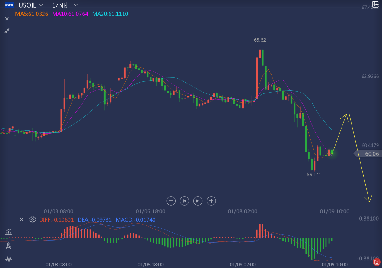 2:原油回落59.4-59.5多,损在58.90,目标60.5-61.50