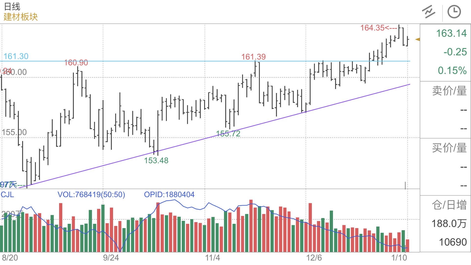 【学习笔记】建材板块 日线今日创近期新高,但随后遭遇供应打压回落,收盘在上 ...
