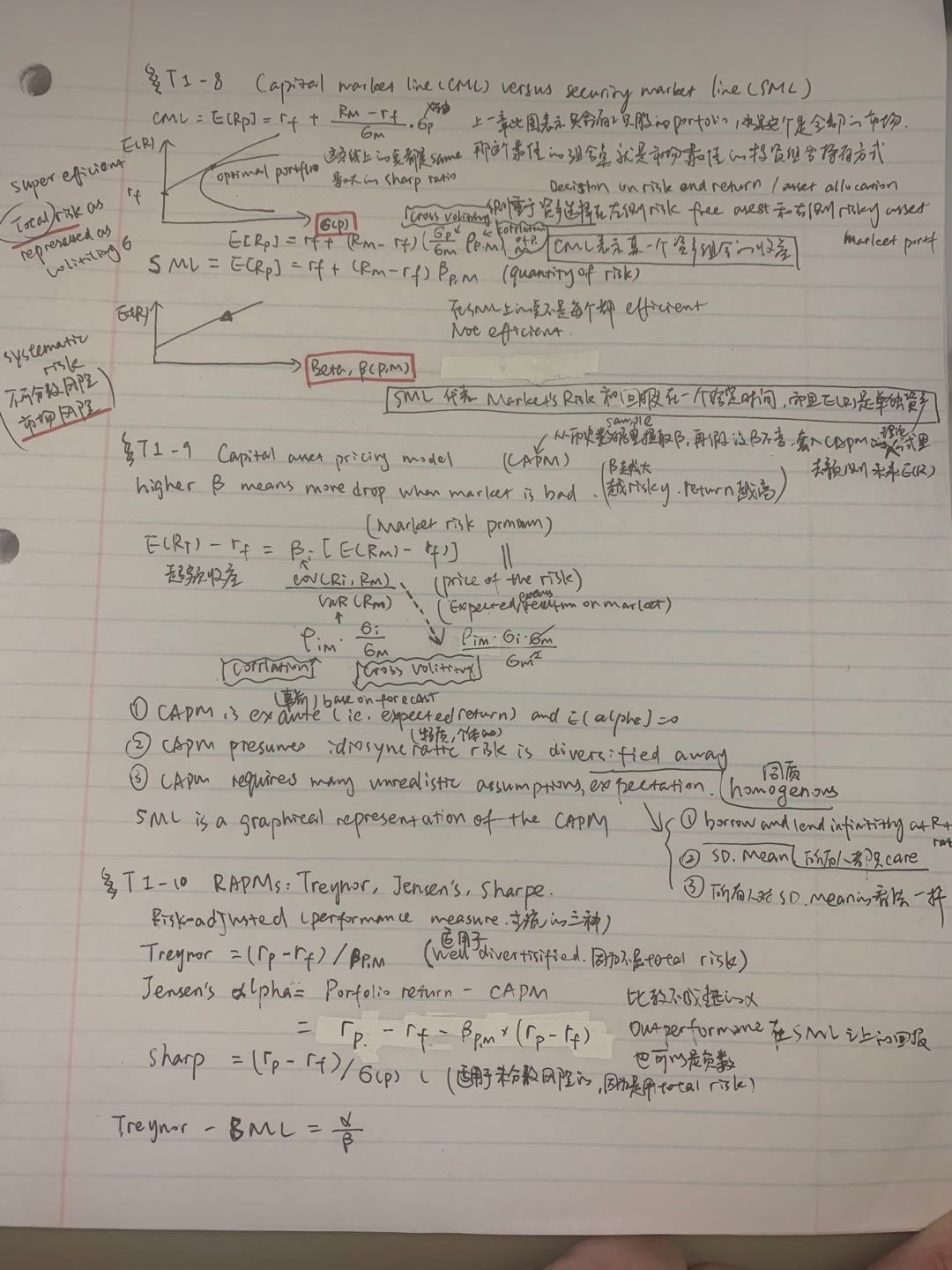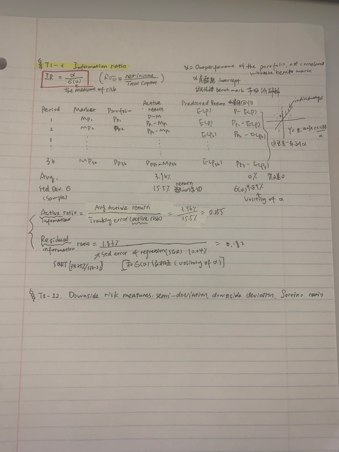 今日学习:1)CML and SML; 2)CAPM; 3)RAPM; 4)Information ratio; 5)downside deviation。需要加强review 不然第一天看懂 第三天就忘记...