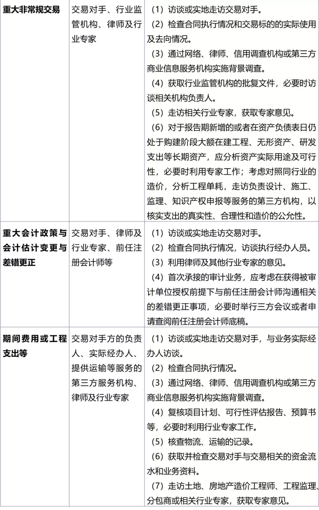 (6)如对某些客户、供应商或其他交易对手存在重大疑虑,可实施的程序如下:实施背景调查、查询交易对手的股权架构和沿革情况、询问直接参与交易的基层员工或其他知情人士、函证交易合同条款、利用专家的工作等。