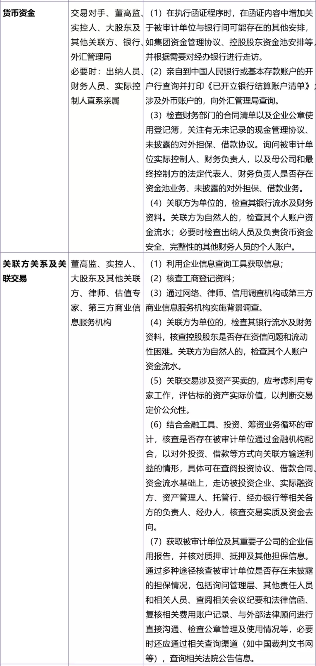 下表中对不同领域舞弊风险的针对性审计程序进行了举例,可作为实务中参考;但所列举的延伸检查程序无法穷尽实务中的所有情形,需项目组根据项目实际情况和风险评估结果增删调整。