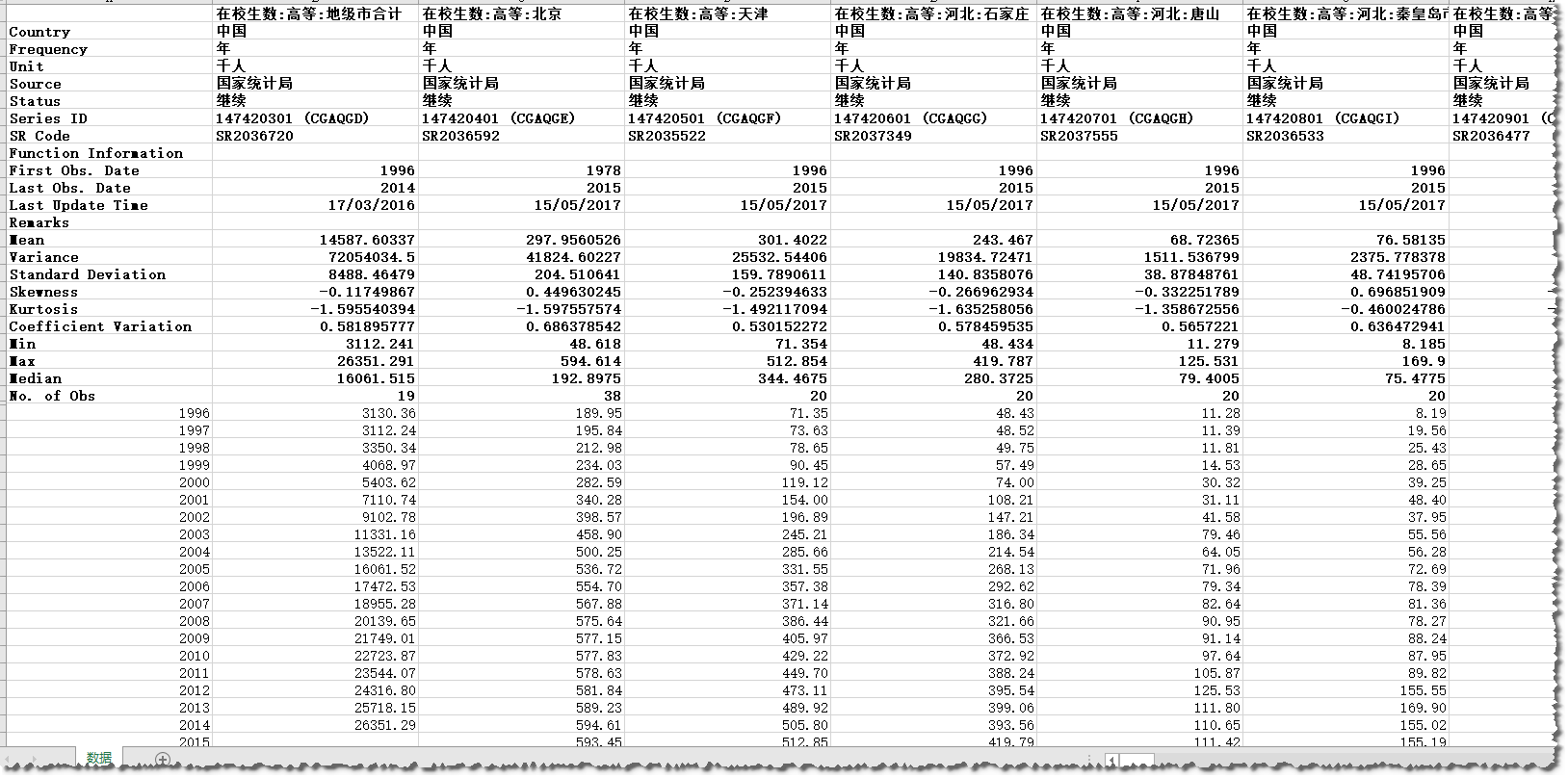 教育:地市级以上城市、地区每年新入学大学生人数:1996-2016