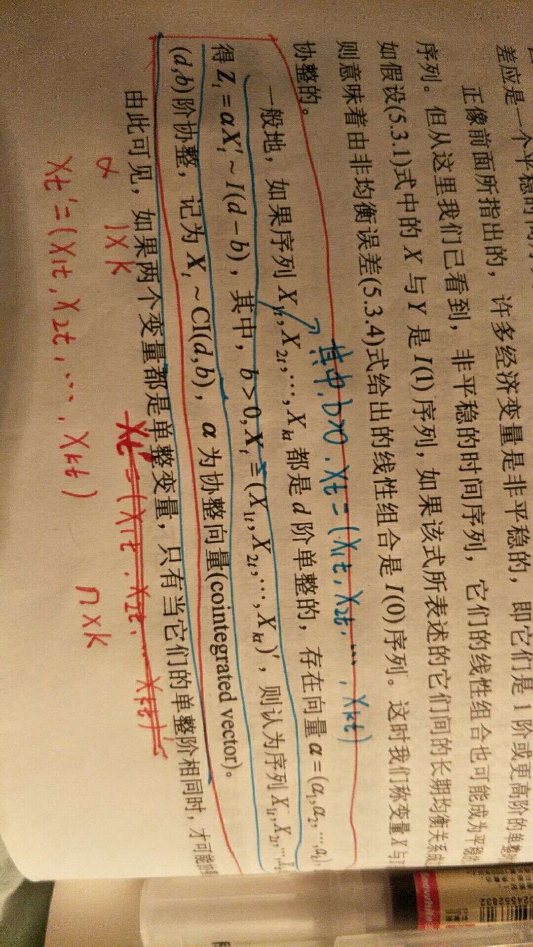李子奈的统计计量学 第四版 有个关于协整的概念,Zt=α Xt' 从数学角度看,α是1×k阶矩阵,Xt'是n×k阶矩阵 两者没法相互乘啊。从计量角度看,Zt应该等于同一期的Xt相乘啊,也就是说Zt=α0+α1*X11+α2*X21形式 而不是Zt=α0+α1*X11+α2*X12形式啊。