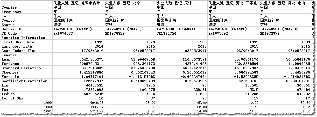 全国地级市、县、区以上城市和地区失业人数 数据:1999-2016