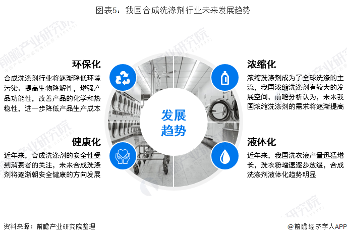 前瞻分析人认为,未来我国合成洗涤剂将逐渐向环保化、浓缩化和液体化的方向发展,逐步提高产品的安全性,满足消费者多样化的需求。