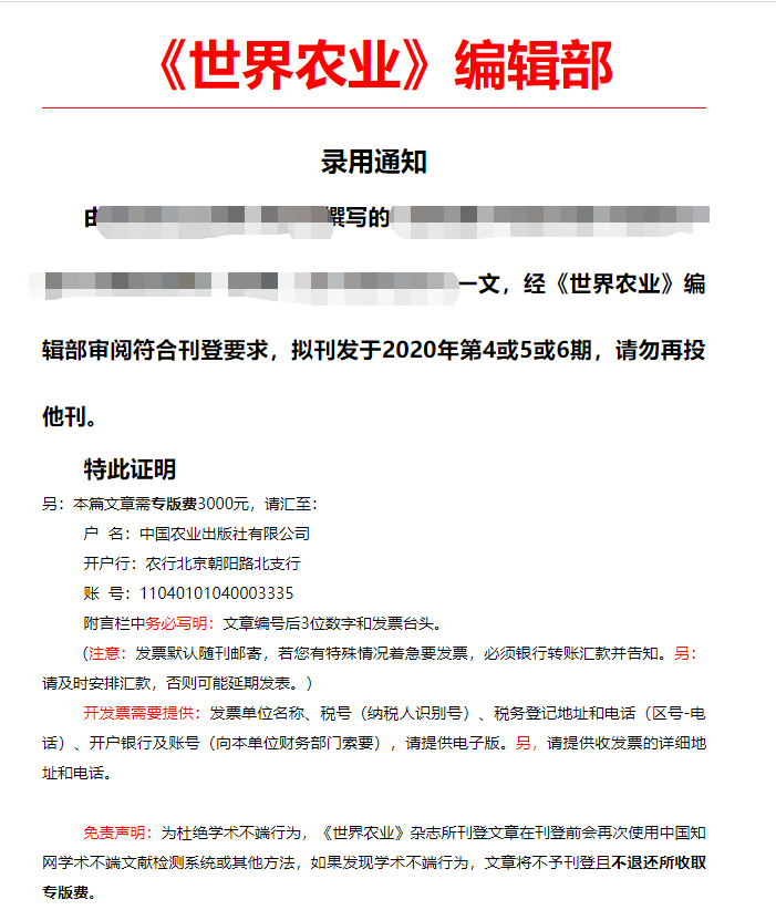 18957189551 发表于 2020-1-16 11:05 今年1月初投了一篇,目前还没收到任何消息,是不是凉了?因为是邮箱投稿:shijienongye2008@126.com,请问怎 ...