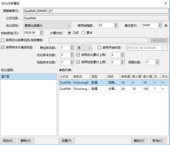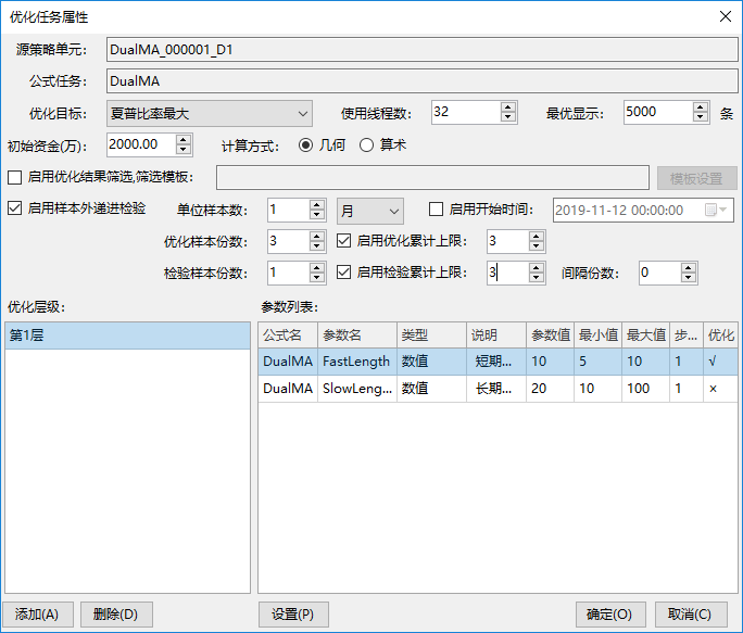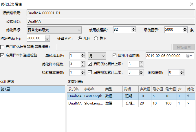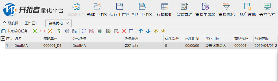 然后在工具栏打开策略优化界面可以看到优化任务的属性。