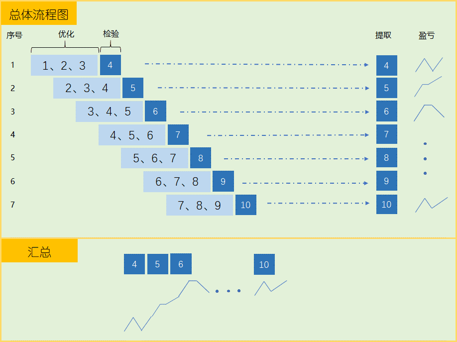 4)以真正检验的样本份数为步长(本案例是1份),移动窗口,确定下一次的优化样本的数据区间。