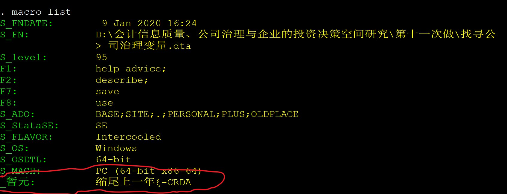 想请教一下,我在stata里设置了暂元,用macro list命令也能找到,可是