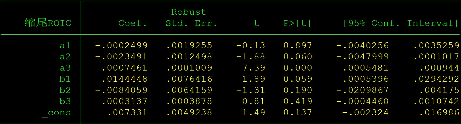 `暂元' a1 a2 a3 b1 b2 b3, absorb(公司 年份) vce(cluster 公司)//跑的reghdfe 回归,包含了暂元的定义变量