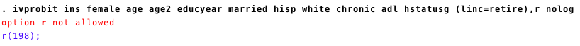 我用的是stata15版本,但是在使用工具变量Probit法时遇到了如下问题(两步法能正常运行)