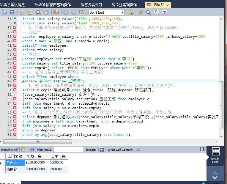 完成的很好,更新数据提供了两种方案,不过题四要的是工资总和,下次多注意审题