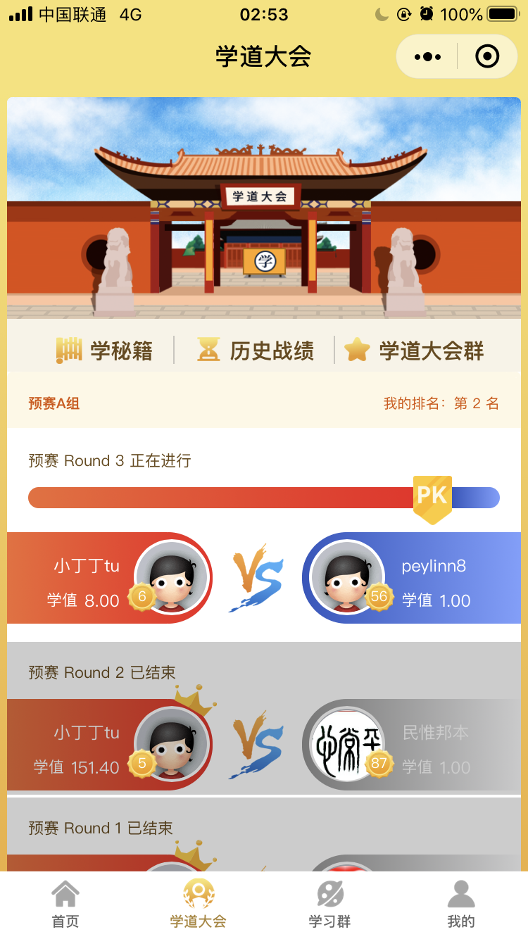 【学道大会】单场获胜奖!+论坛币!+抽现金奖!(添加群顶部微信)