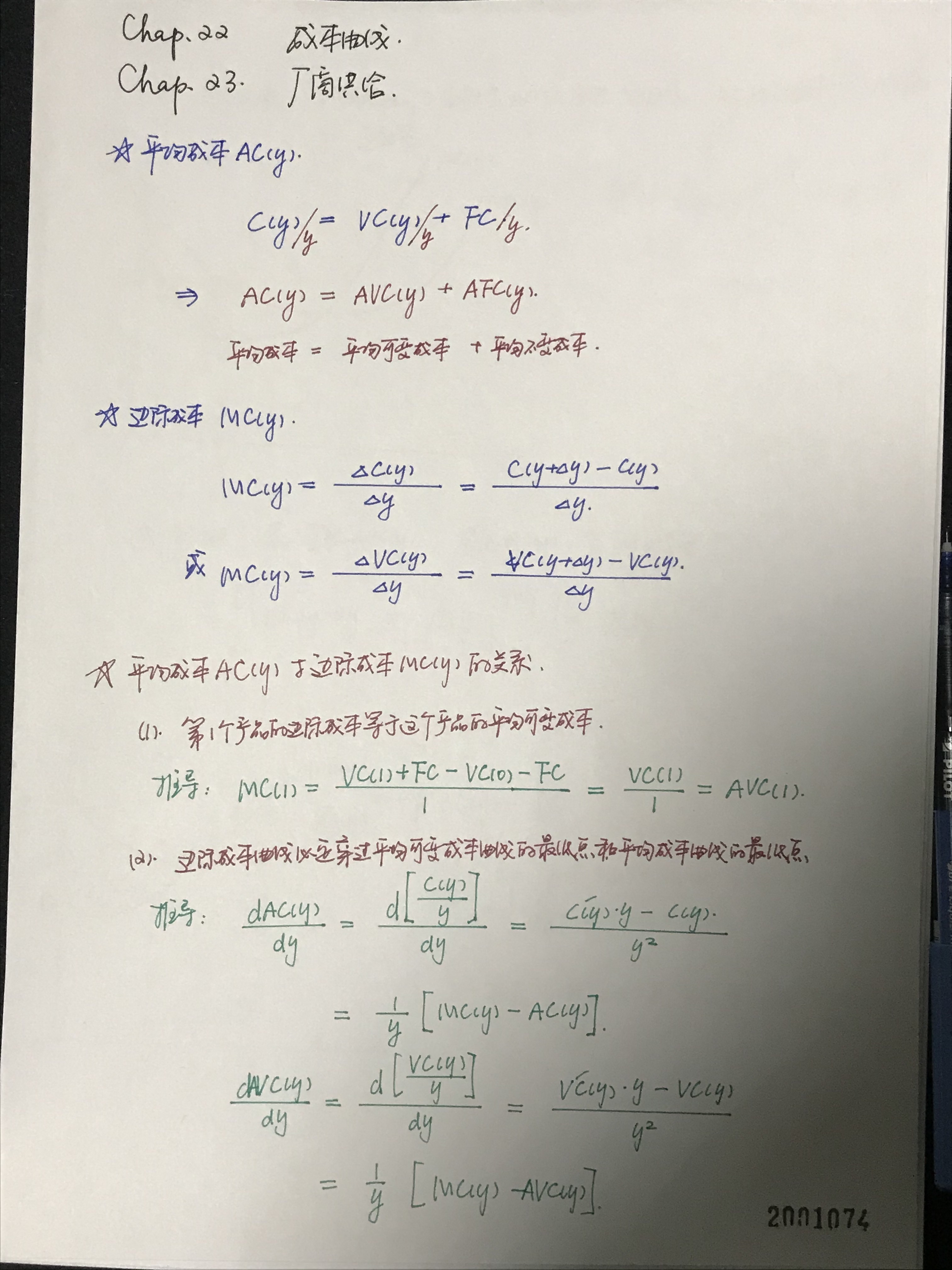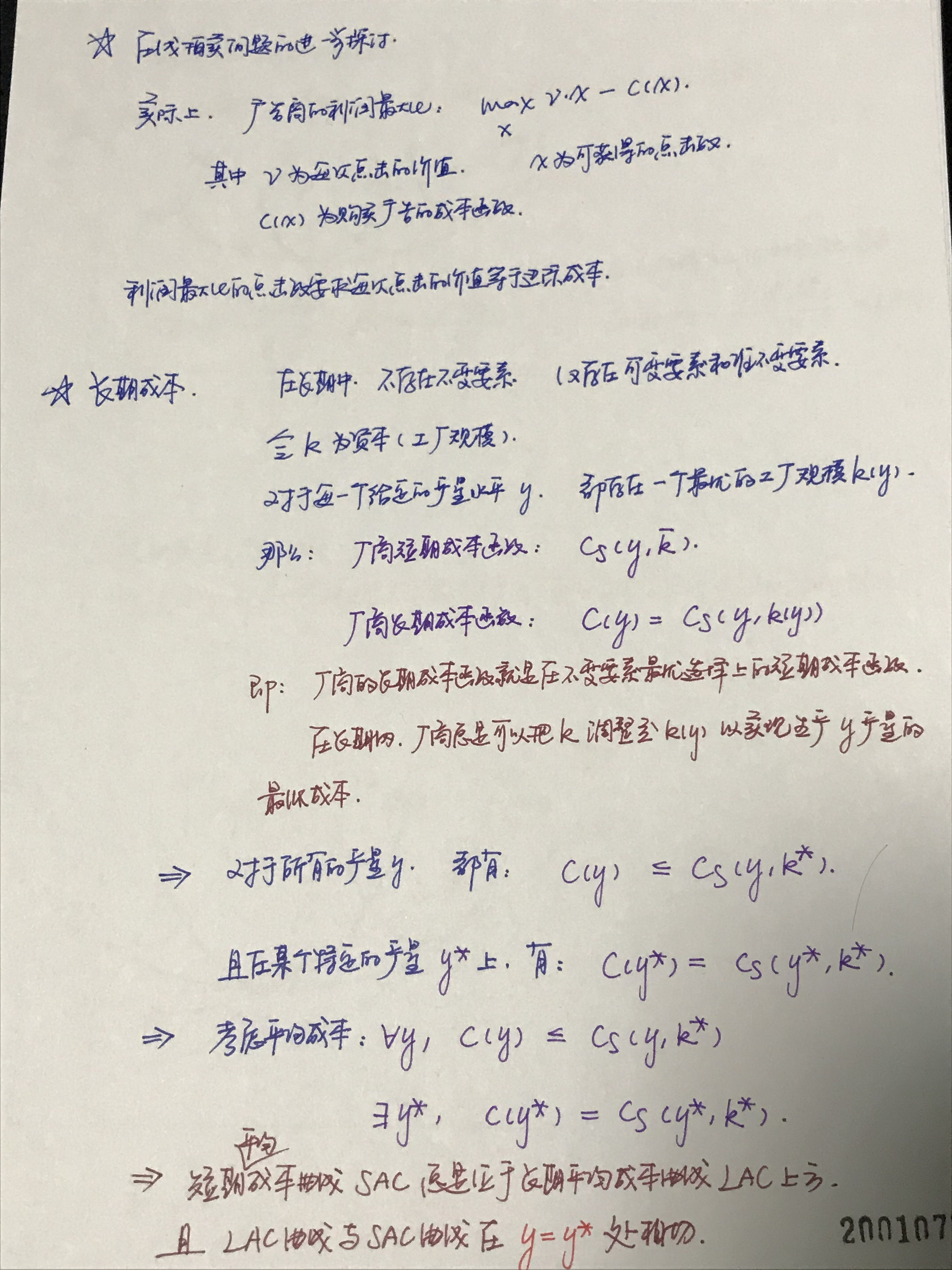 【学习笔记】20200118 要素市场:短期成本与长期成本 平均成本,平均可变成本 ...