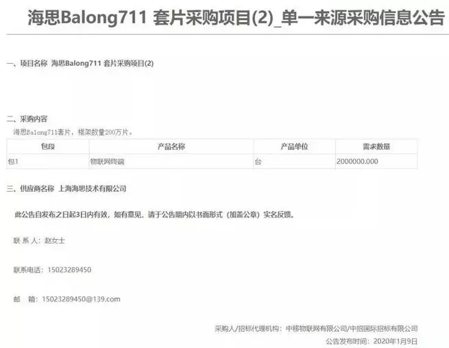 值得一提的是,这是海思自去年10月对外开放该芯片后,中国移动第三次向华为下订单。