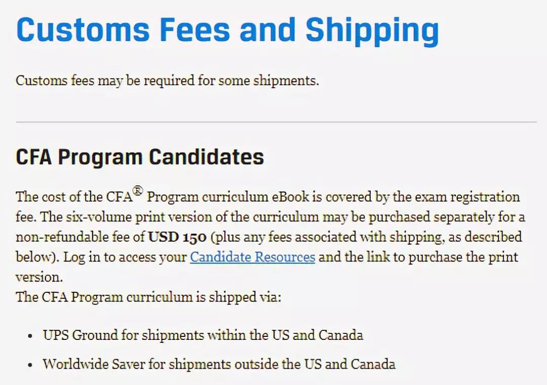 CFA®考试纸质版教材的运费一般是20美元,如需在美国境内装运,请在六至九个工作日内交货。对于在美国境外运输,包裹应在九个工作日内送达海关部门。