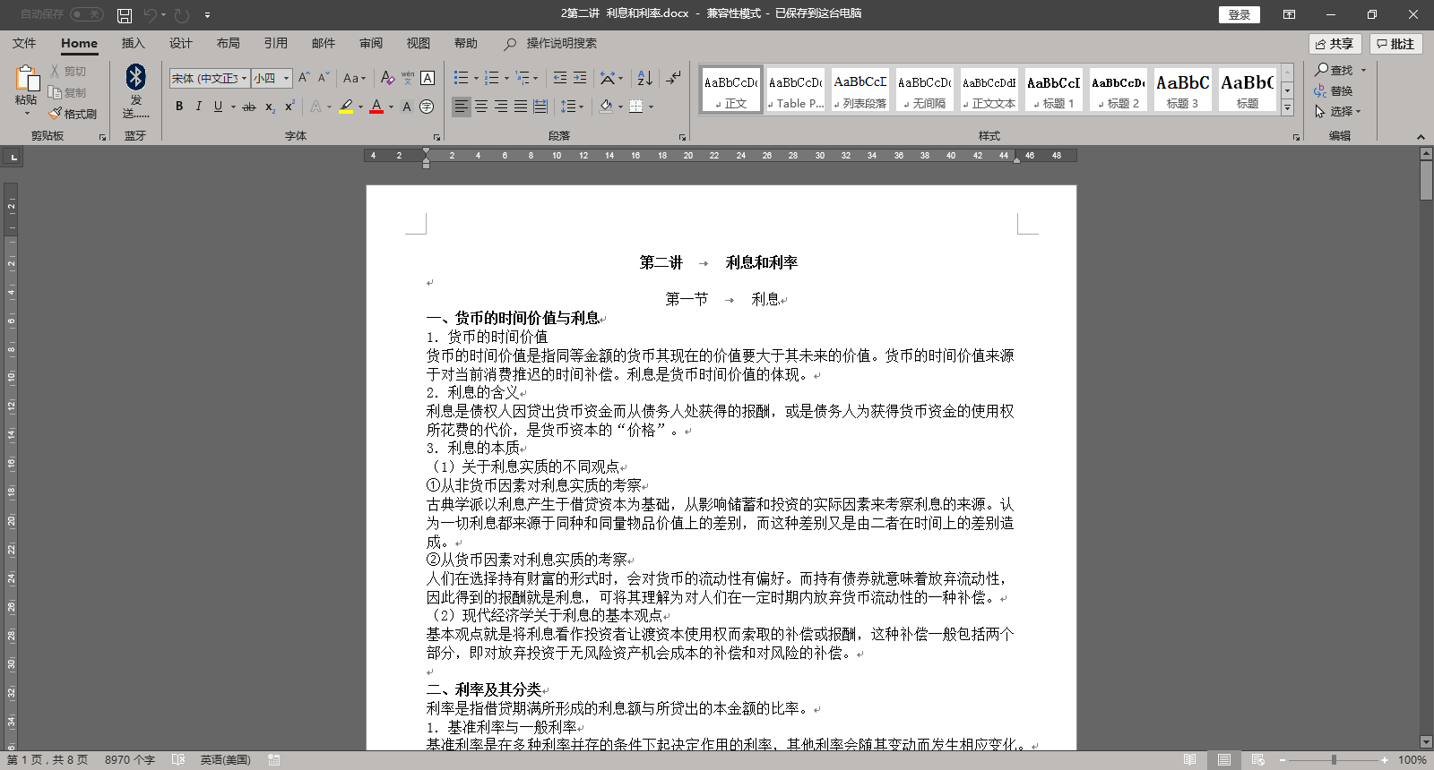 《货币金融学》讲义第二讲 利息和利率