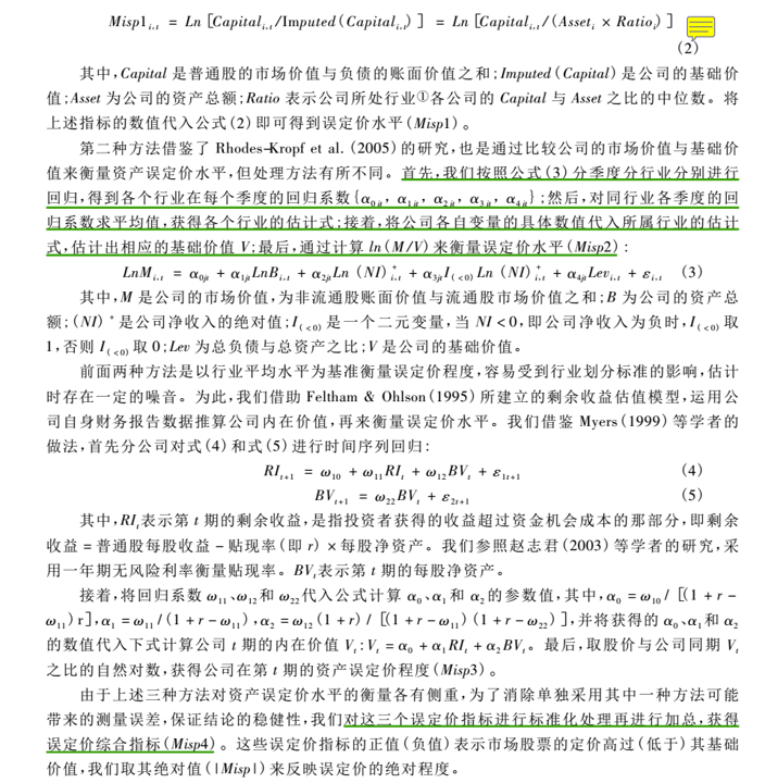 毕业论文需要用到股票误定价的指标,借鉴游家兴等(2012)的方法,选用的是11年-18年的A股数据,各位同学谁有现成的数据或者谁能跑一下,有偿购买,价格好商量,可以加微私聊:Namelessyao_233