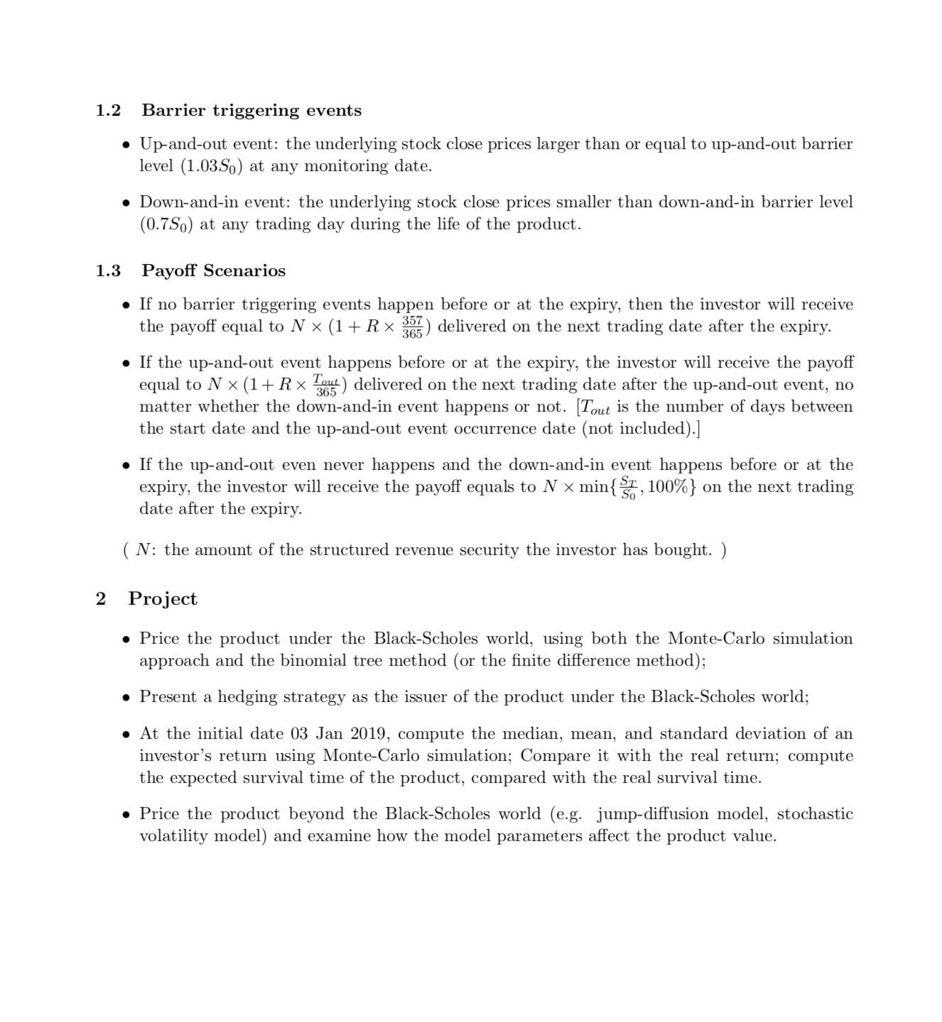 1. 关于Monte carlo,我用R写了一万个路径,每次都是随机数,用布朗运动走的,然后我觉得按照这个产品的要求算出payoff了,最后的payoff平均数是0.94*S0左右,我感觉是太少了,却不知道问题在哪里