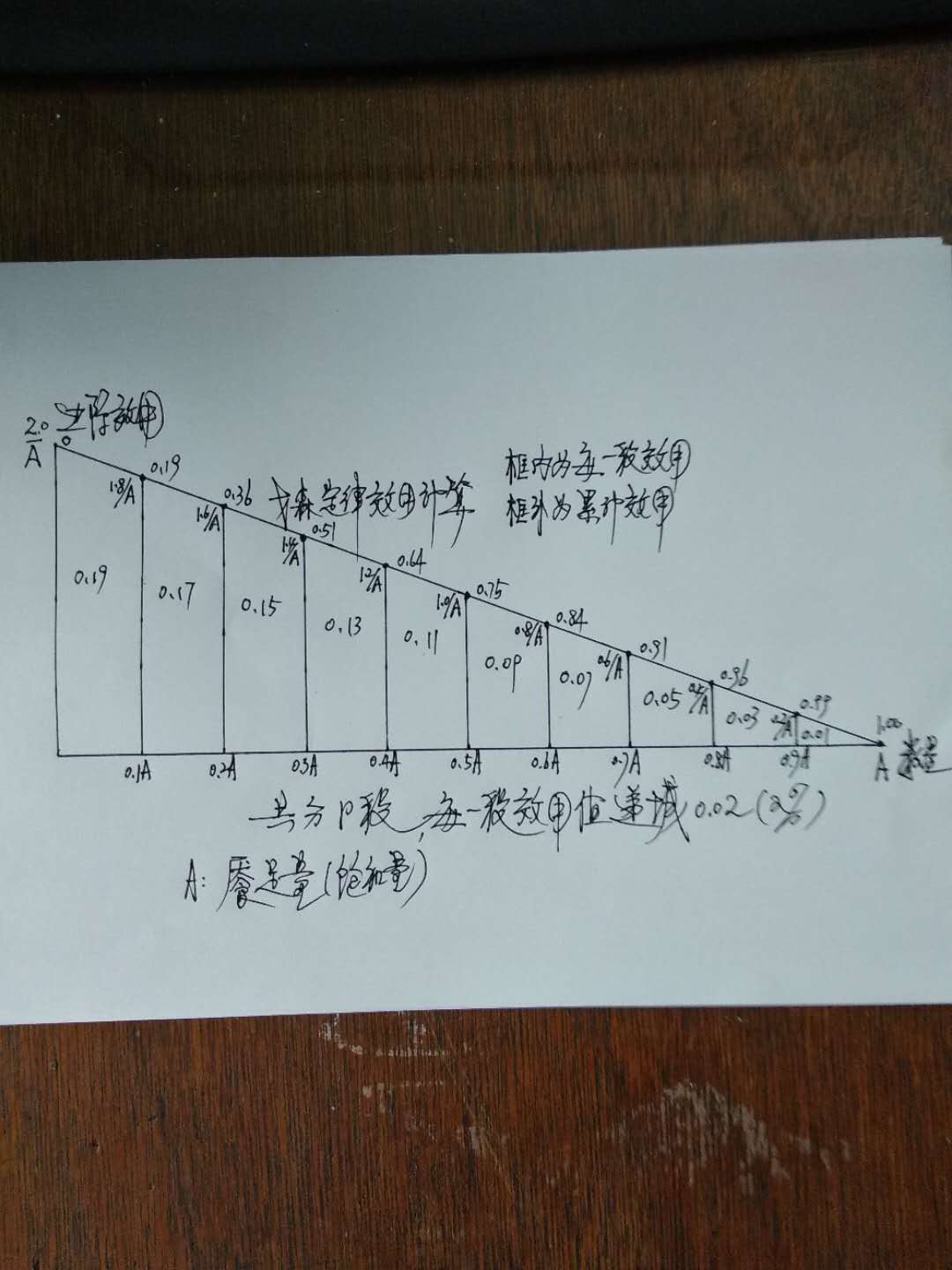可以计算出分10份后每一分界线对应的高度,表示边际效用。