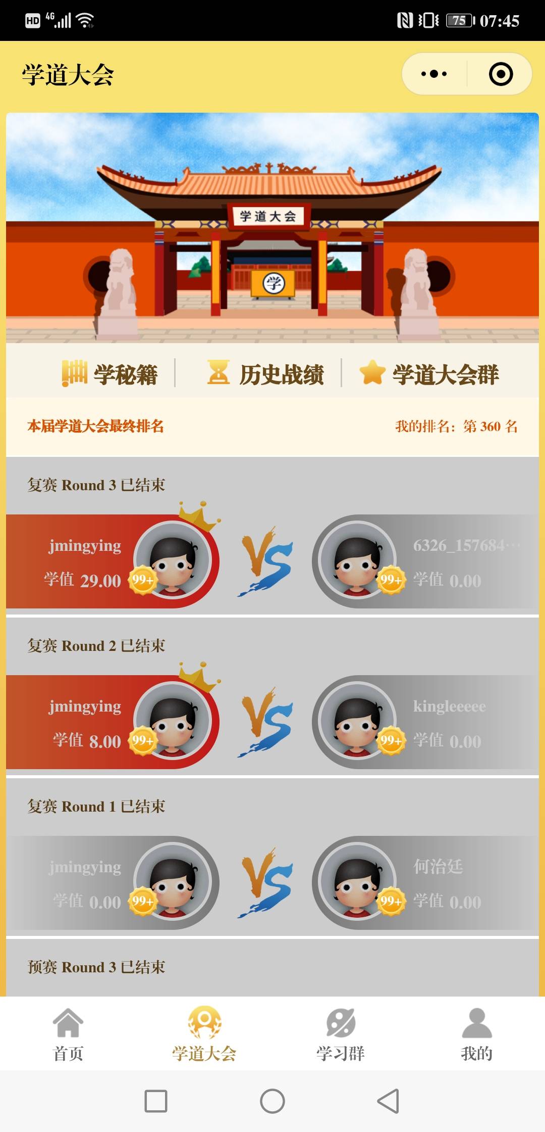 【学道大会】单场获胜奖!+论坛币!+抽现金奖!(添加【学道大会群】顶部微信)