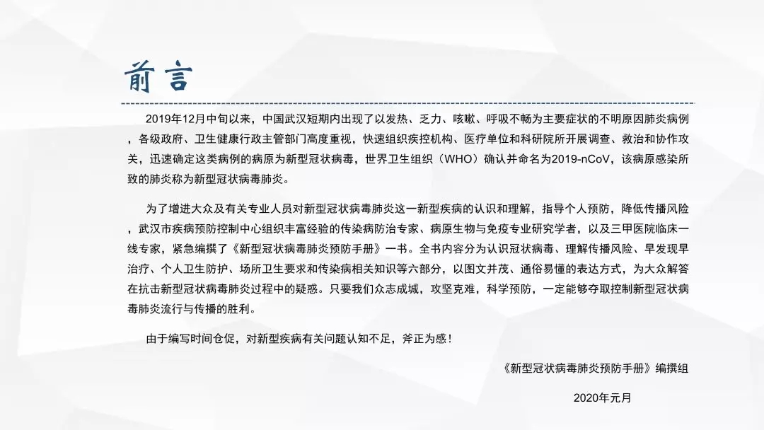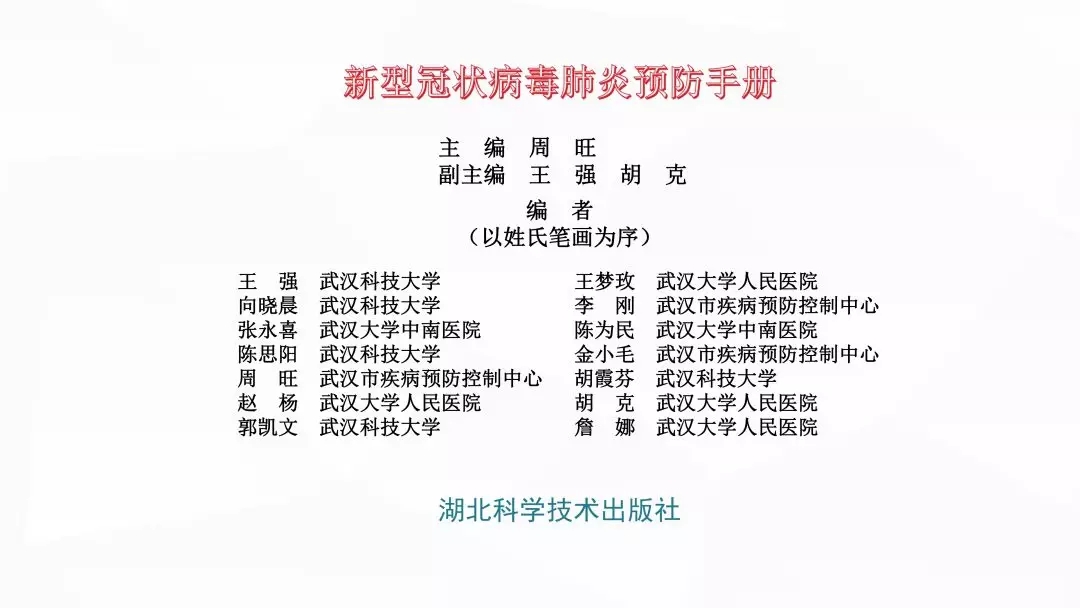 请扩散《新型冠状病毒肺炎预防手册》——湖北科学技术出版社