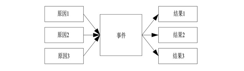 复流程图可以理解为流程图的组合,将流程图的步骤、顺序关系变为原因和结果的描述,就形成了复流程图的一条分支,多条分支组合起来便形成了一个复流程图。绘制时,将某一现象作为中心词,在它的左侧书写出现这一现象的原因,在它的右侧书写现象所导致的结果,原因和结果不需要一一对应(如图44所示)。