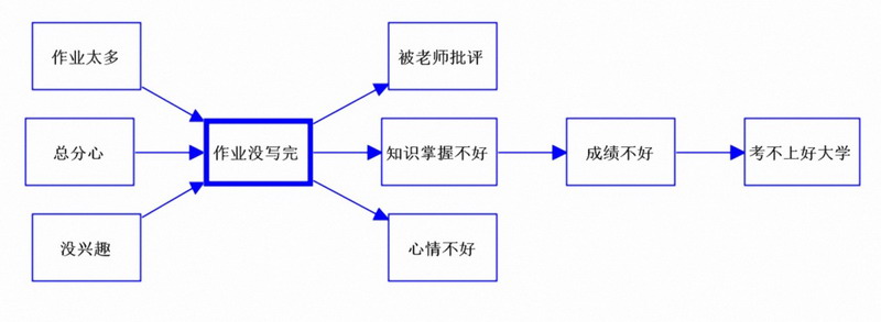 使用Thinking MapsSoftware绘制作业没写完的因果图(如图45所示)。