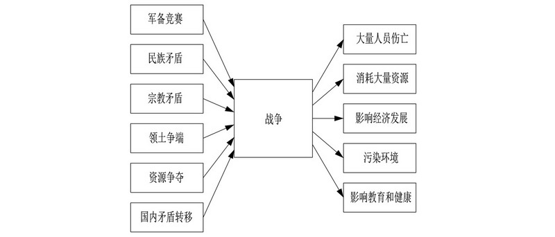 也可以使用AUTOCAD绘制战争的因果图(如图47所示)。