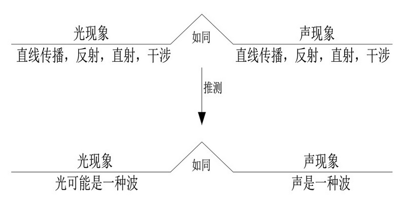 物理学家惠更斯提出光的波动说时,借助光的传播现象和声的传播现象做了类比。因为光如同声一样,具有直线传播、反射、直射和干涉等现象,声被证明是一种波,按照类比逻辑,光可能也是一种波,后来的实验确实证明了光是一种波(如图56所示)。
