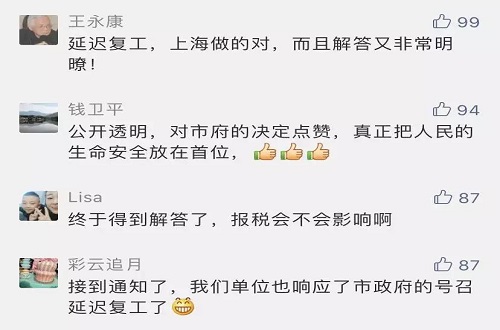 1月27日,上海市发布了本市延迟上海市企业复工和学校开学的通知,明确规定上海市区各类企业不早于2月9日24时起复工,涉及保障疫情防控地区、群众生活必要的、涉及国计民生的相关企业除外。