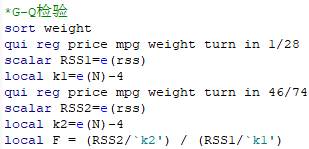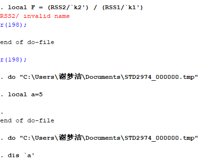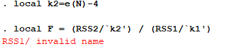 local F = (RSS2/`k2') / (RSS1/`k1')