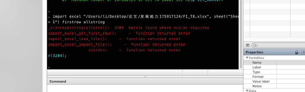 苹果电脑Mac 下载的是stata15,在导入excel时一直显示如下图,求解答!!!!!!