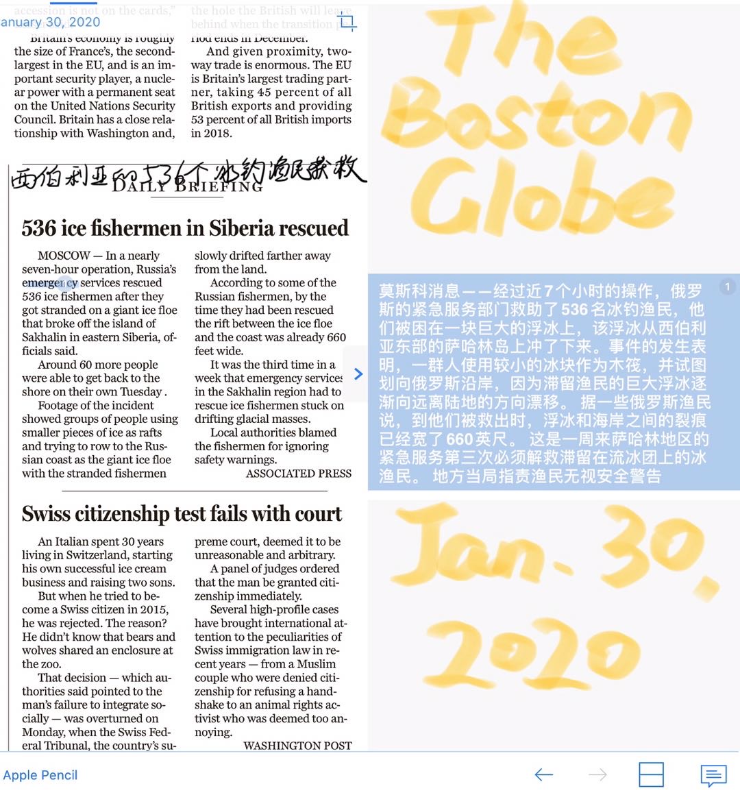 今日的译文!