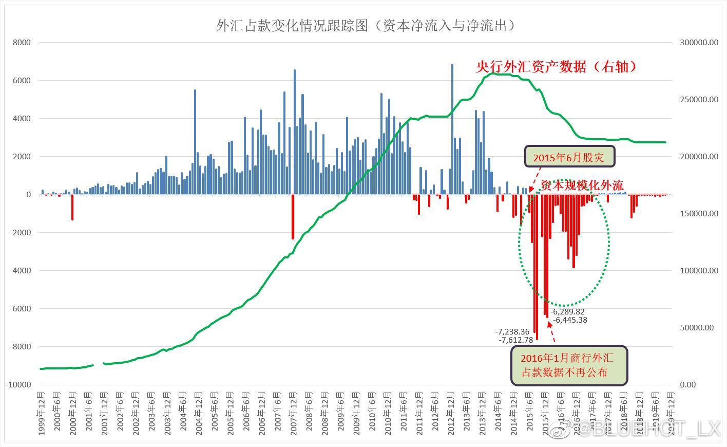 因此,超192万亿各项存款中的其中约7万亿人民币存款,必须要从商行的超额准备金中流出并进入央行,跟央行购买外汇,央行3万亿美元外汇储备,会萎缩减少到2万亿美元规模。