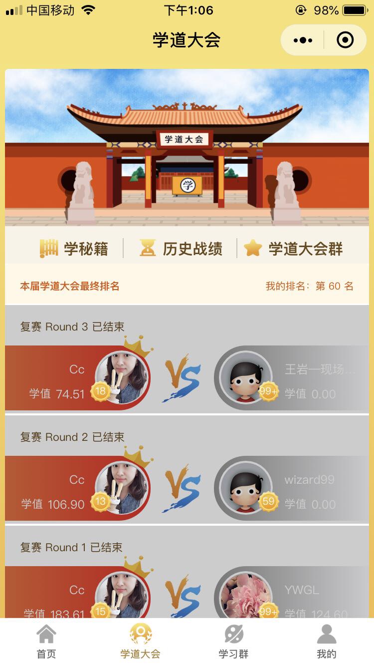 【学道大会】单场获胜奖!+论坛币!+抽现金奖!(添加【学道大会群】顶部微信)