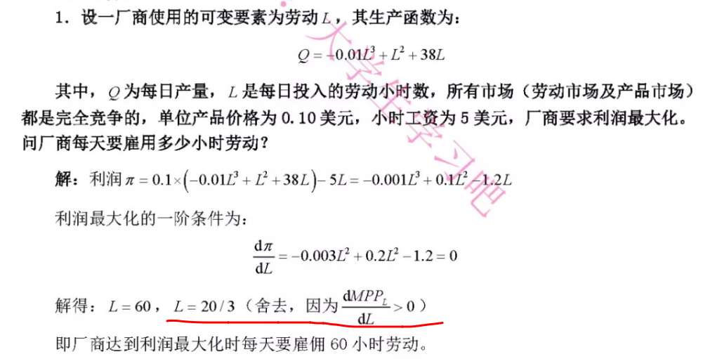 深深深蓝海 发表于 2020-2-4 00:55 画出来利润关于劳动的图象,可以看到L=20/3处利润取到极值,但是极小值,所以舍去。MMP是边际产量,极值右边 ...