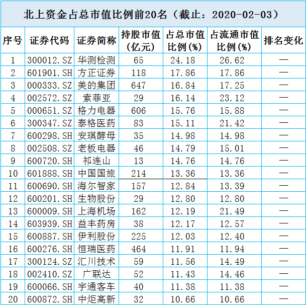 2月3日北上资金买入最多的股票