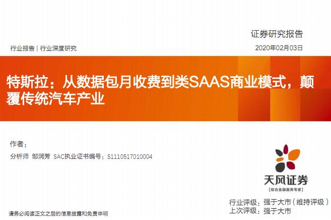 特斯拉,从数据包月收费到类SAAS商业模式,颠覆传统汽车产业-20200203-天风证券-22页.pdf