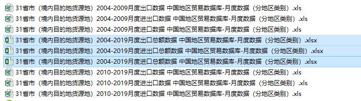1.数据列表中选中的三个文件是整理后的文件,分别为31省市200401-201911的进口、出口、进出口总额数据;