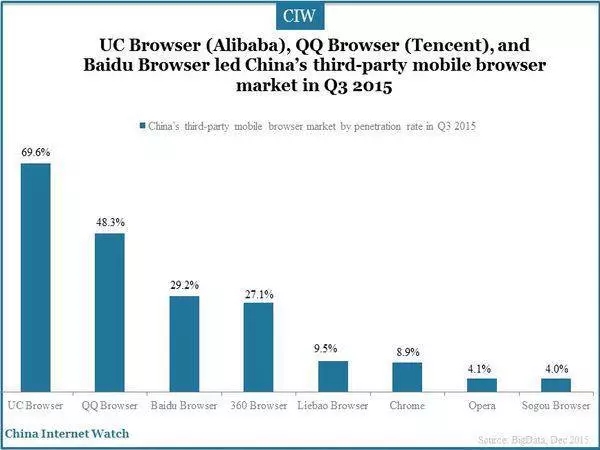到2015年,UC(这时归阿里巴巴所有)仍然处于移动浏览市场的顶端。