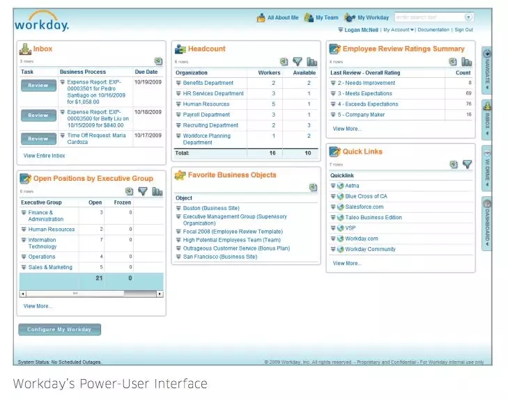在人力资源和财务方面,你会发现许多组织内的用户需要在关键点访问相关的工具。他们需要在年底检查他们的福利。他们需要在有变动时更新他们的个人信息。由于每个人都需要做这些事情,布斯里意识到,它应该更简单。像Facebook和亚马逊这样的产品使以前复杂的流程(如与朋友交流或从网络上购买产品)变得简单一样,Workday将使这些人力资源流程变得简单。