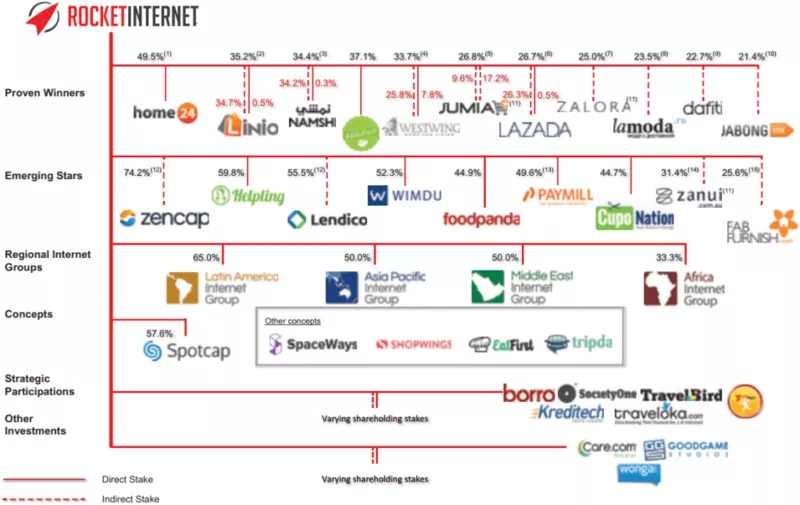 在不到两年的时间里,Rocket Internet从公司投资者——菲律宾长途电话公司( PLDTC )和联合互联网公司( United Internet )——那里获得了额外的资本注入,稀释了创始人和早期投资者的所有权份额。萨米尔兄弟通过他们的投资机构Global Founders,仍持有Rocket Internet超过50%的股份,其中Kinnevik和United Internet各自在上市前控制了该公司10%以上的股份。