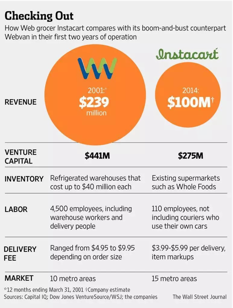 作为硅谷的宠儿,Webvan从红杉资本和Benchmark等风险投资公司筹集了近4亿美元的资金。然而,它却在其2001年申请破产,成为最大的网络公司失败案例之一。