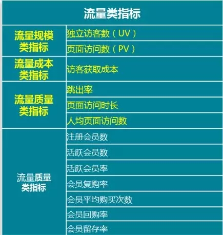 网站流量指标:即对访问你网站的访客进行分析,基于这些数据可以对网页进行改进,以及对访客的行为进行分析等等。