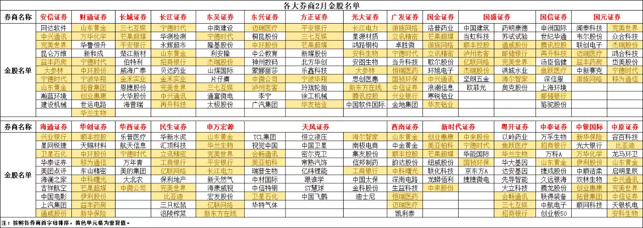 【学习笔记】各大券商二月金股名单[转自金融老裘]
