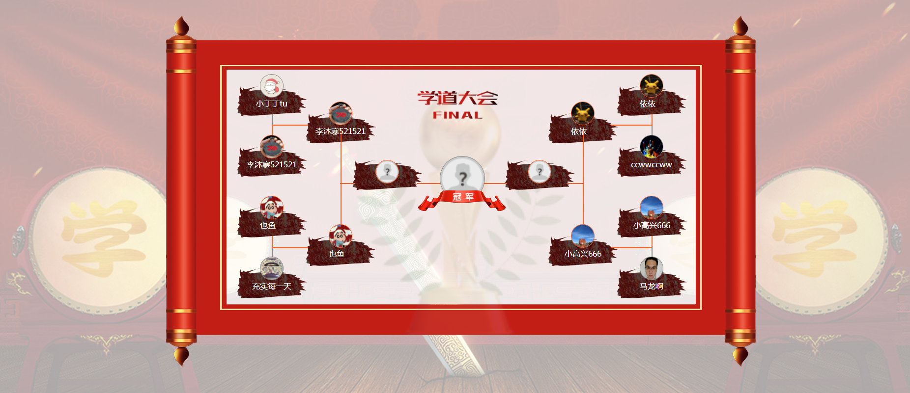 温馨提示:每届比赛第一轮【对手隐藏模式】即第一轮无法查看实时对手【学值】分值(也就是第一轮务必取得【尽可能高分】)